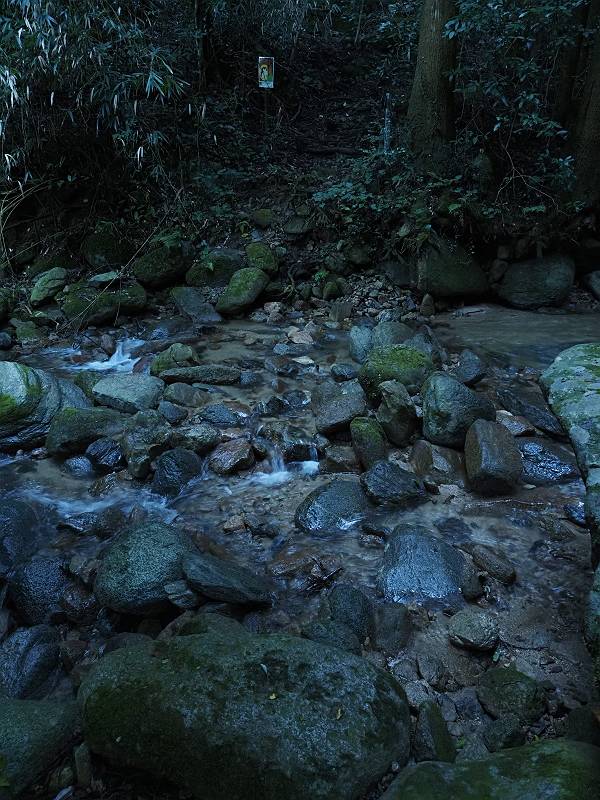 スタートから20分ほどのところで沢を渡った。桜谷コースではこの後に何度か沢を渡ったが、この沢が一番大きな沢だった。沢の浅瀬には魚が居たがすぐに隠れて仕舞ったので、魚種まではわからなかった。