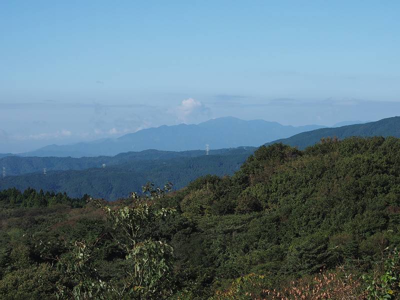林道からの登山道への入口を1箇所見逃して、ショートカットし損ねた。だが、そのおかげで脊振山が見えた。下りは全く展望が無いものと思っていたので少しラッキーだった。