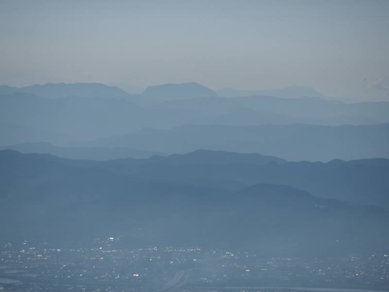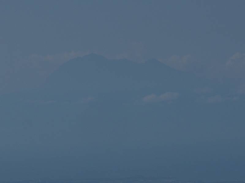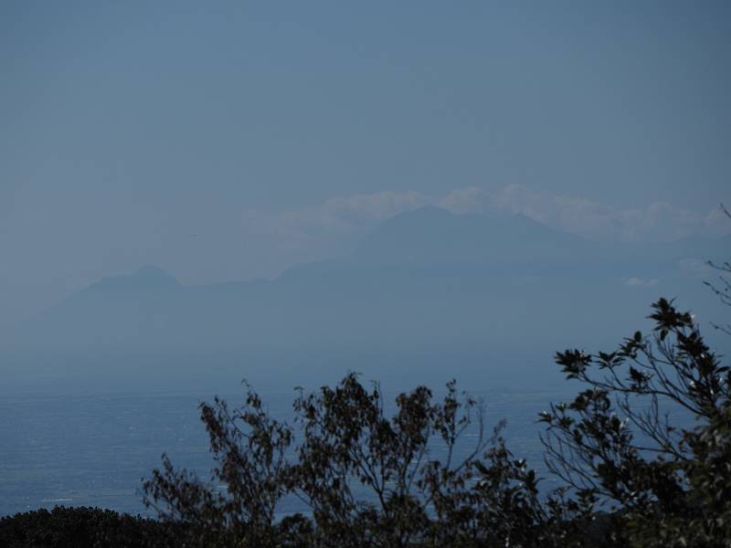 この日は九千部山から遠くまで見えていたので、ここからも遠くまで見えるだろうと思っていたが、小岱山、三池山が見えた。霞んではいたものの雲仙も見えた。