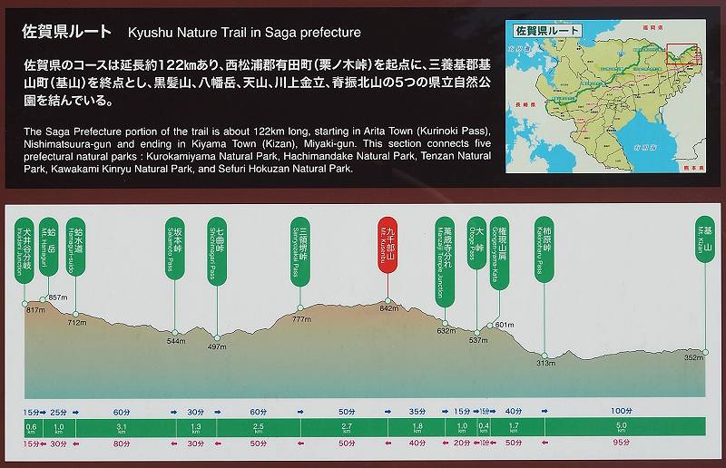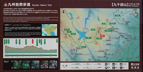 舗装道の分岐からほんの少し歩くと九州自然歩道の案内板があった。前回(2020/1/21)に来たときには木製の古そうな案内板だったが、新しくなっていた。案内板を眺めた後に歩き出すとツクツクボウシの鳴き声が聞えてきた。