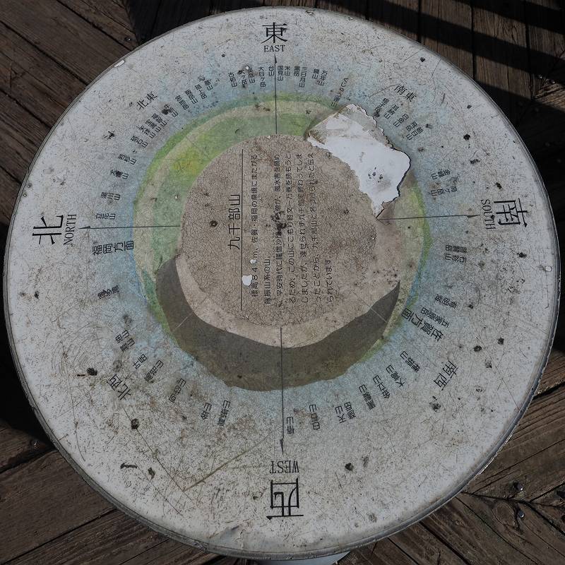 とりあえずは展望台に上がり、景色を楽しんだ。方位盤があるのだが、見える景色とズレがあるのでおかしいなと思って、もしやと思っ方位盤に触ってみたら、動いた。固定されていない状態ならズレがあって当たり前だ。ズレていてはどこがどの山やらわからないので正しい状態に直してから、また景色を眺めた。