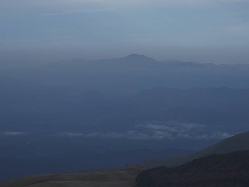 県道11号から見えた阿蘇山は猟師山の山頂から見たよりもうっすらとしていた。