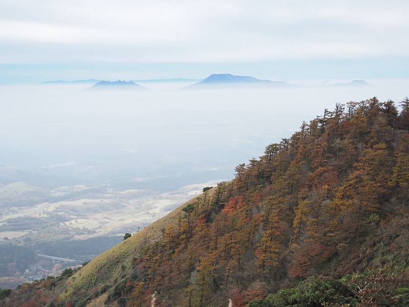 やまなみハイウェイの瀬の本から牧ノ戸に向かう途中の展望所に車が3台ほど停まっているのが見えた。