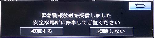 玉東町を走っているときにカーナビに緊急警戒放送のダイアログボックスが表示された。もうすぐガソリンスタンドで給油をするからそこで確認しようと思っていたら消えてしまった。でも、その後で何度か表示されたのでガソリンスタンドで確認した。