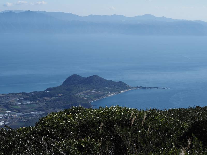 山頂からの眺めは良く、桜島、屋久島、長崎鼻、池田湖等が見えた。桜島の右には霧島山も見えた。屋久島の方を見るには一番高い岩の上に立つ必要があった。