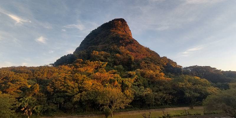竹山が宿のすぐ近くあった。開聞岳からはポツンと見えていたが、近くから見ると存在感が大きく、意外と迫力があった。