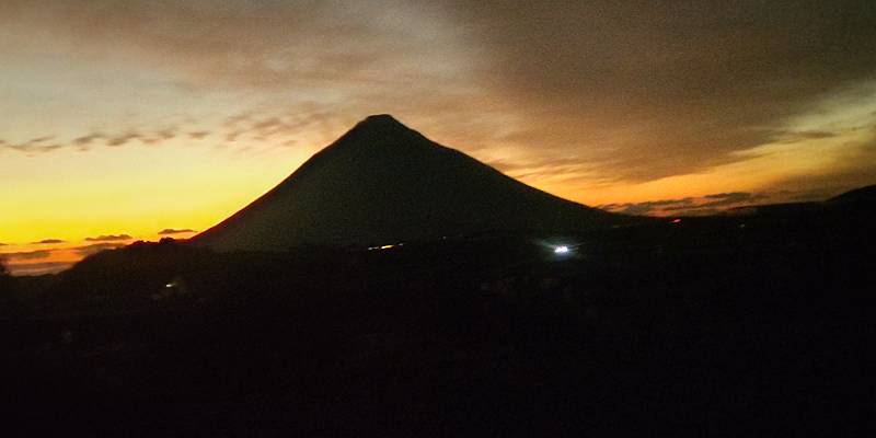 2合目に向かう途中で見えた開聞岳の姿から蓼科山を思い出した。蓼科山は登山口に向かう途中で山の上の方が見えていた。蓼科山は7合目から登ったけど、見た目より大変だった。今回の開聞岳は標高差が800mくらいだから大変さは正面登山口から登る由布岳と同じくらいかなと思っていたけど、山が見えているとは言え、蓼科山みたいに油断ならないかもと思った。結果的には開聞岳も見た目よりも大変だった。